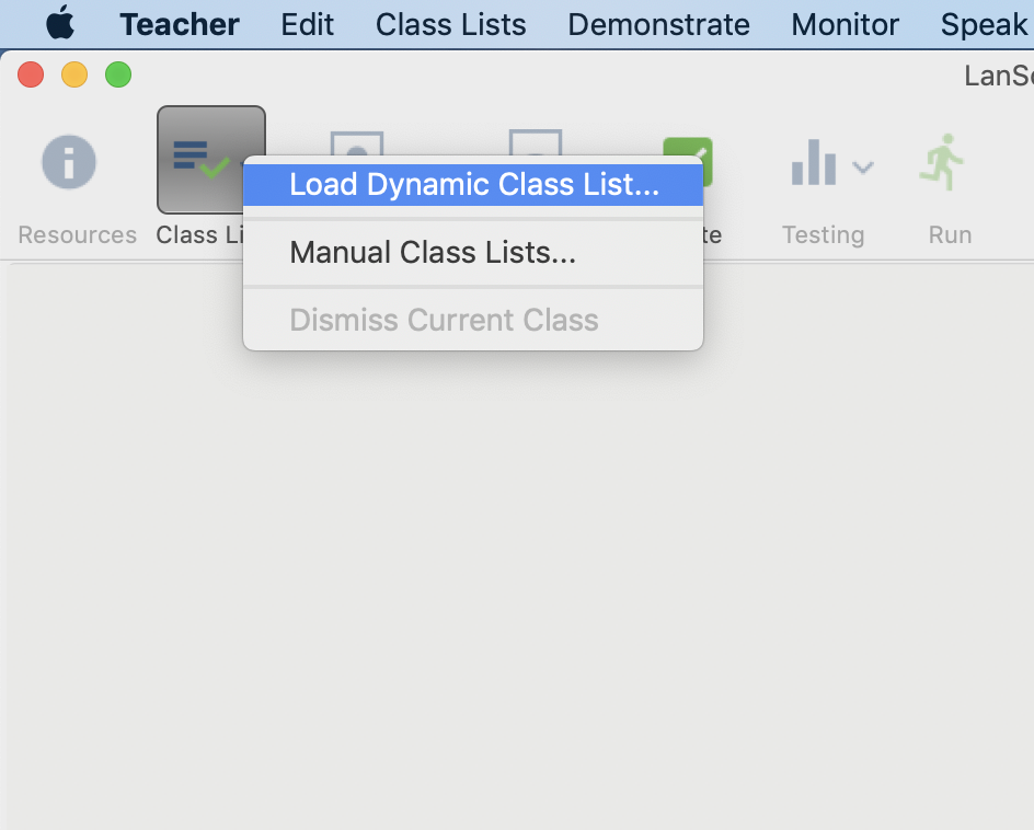 1. Open the Teacher application (You can find it in Applications in the LanSchool folder)