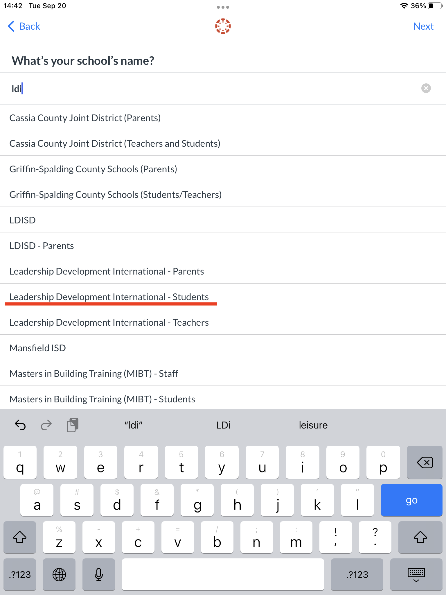 3. Click Find my school and type in “LDi”, choose “Leadership Development International – Students”