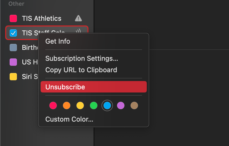 Adding the TIS Athletics Calendar to your Mac